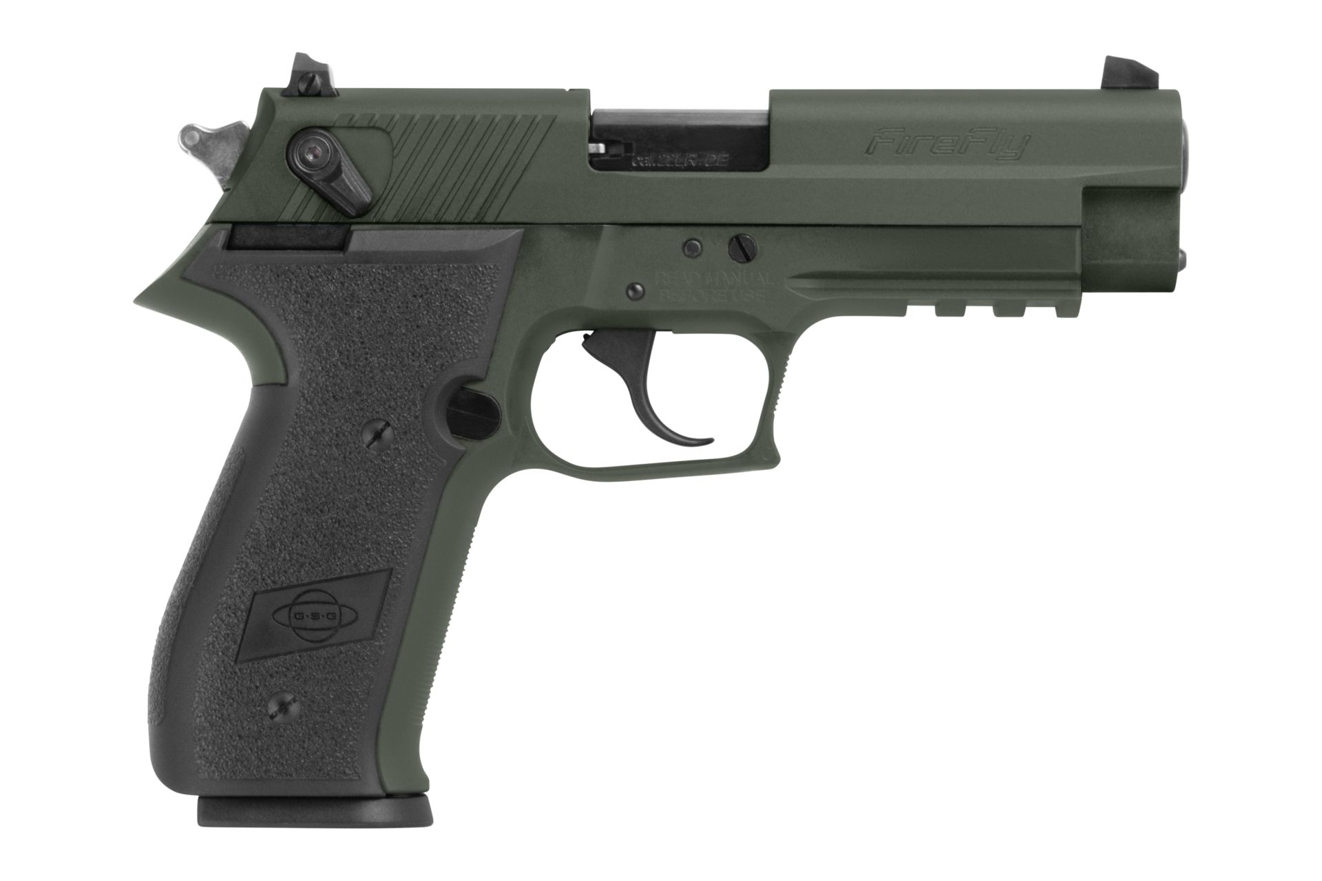 GSG Fire Fly to poręczny pistolet kalibru .22 LR zaprojektowany z myślą o niskim koszcie strzelania i łatwym treningu. Wersja OD Green wyróżnia się estetycznym, taktycznym wykończeniem, natomiast gwintowana lufa rozszerza funkcjonalność — pozwala na montaż zgodnych tłumików lub adapterów gwintowych (należy sprawdzić typ gwintu i lokalne przepisy). Niski odrzut amunicji .22 LR (również HV) ułatwia naukę techniki strzelania i przyspiesza progres. Model charakteryzuje się ergonomicznym chwytem, przyrządami celowniczymi oraz prostą konstrukcją ułatwiającą serwisowanie i eksploatację.