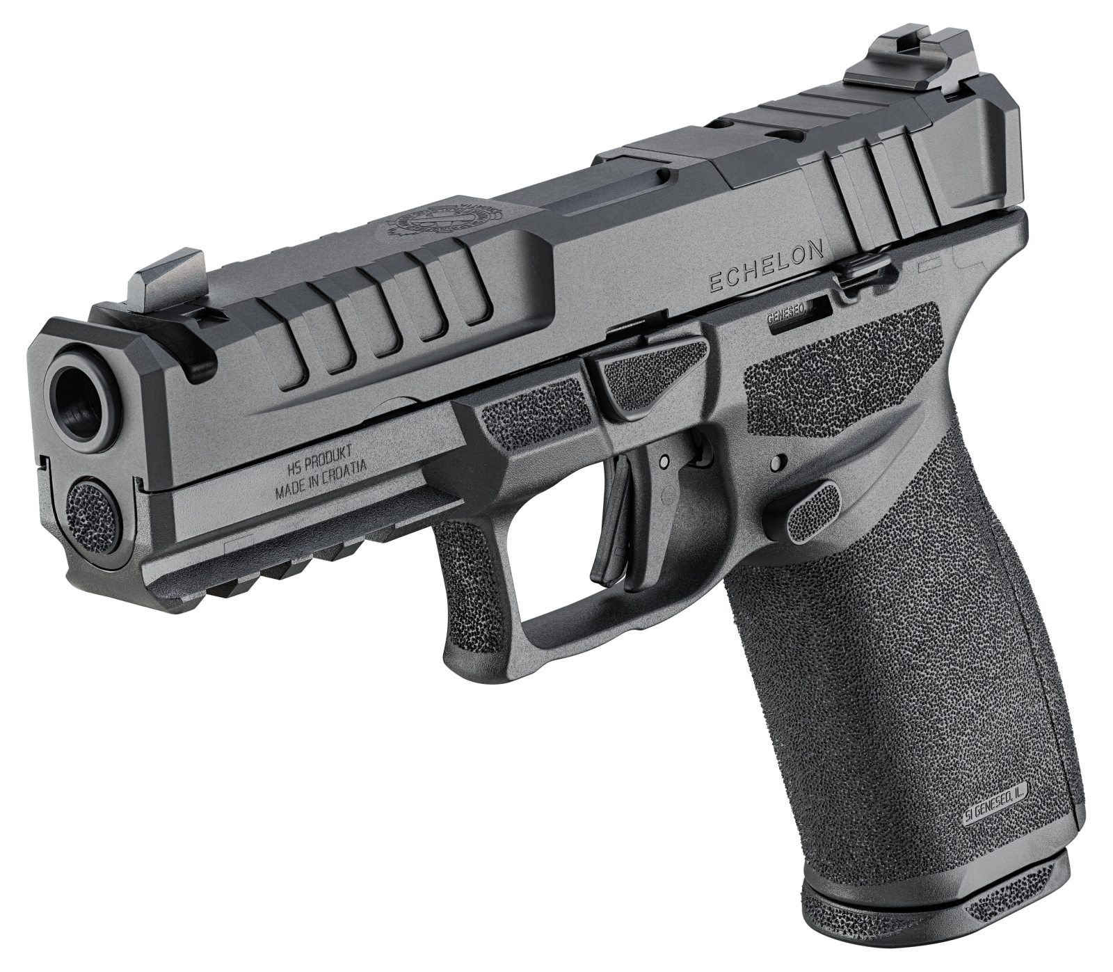 HS-Echelon 4,5″ VIS 3-DOT TRYT — precyzyjny pistolet kal. 9×19 mm z lufą 4,5″ (match/extended), wyposażony w przyrządy celownicze 3-dot z trytem (podświetlane). Zoptymalizowany pod pewne celowanie i komfort strzelania — dobry wybór do służby, taktyki i zaawansowanego treningu.
