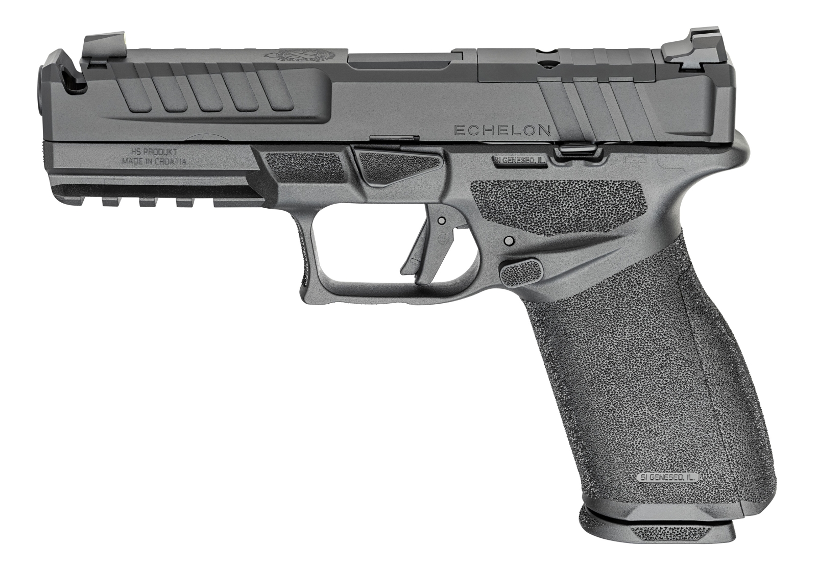 HS-Echelon 4,5″ VIS 3-DOT TRYT — precyzyjny pistolet kal. 9×19 mm z lufą 4,5″ (match/extended), wyposażony w przyrządy celownicze 3-dot z trytem (podświetlane). Zoptymalizowany pod pewne celowanie i komfort strzelania — dobry wybór do służby, taktyki i zaawansowanego treningu.